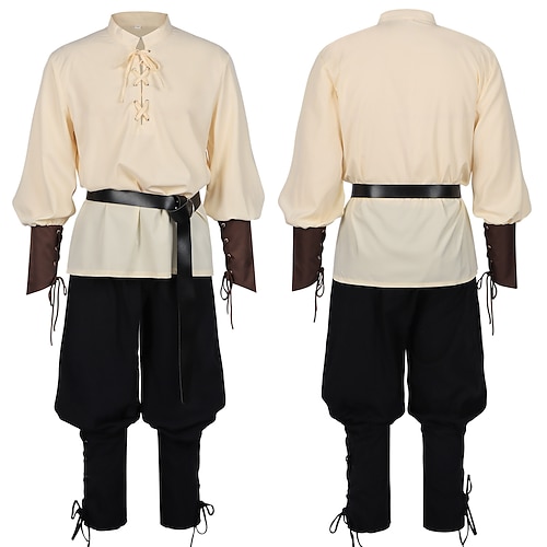 Medievale Rinascimento Costume di fantasia Lunghe Pirata Vichingo Costume Per uomo Vichingo Costumi da pirata Halloween Carnevale Performance LARP Fiera Rinascimentale Adulti Camicia Pantaloni Cintura