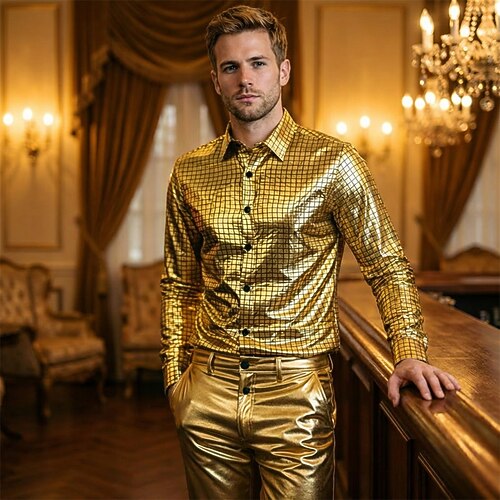 Disco Anni '80 Metallico Lucido Blusa / Camicia Mascherata Disco A quadri Costume Per uomo Costume di Carnevale Mascherata Festa / Sera Parata dell'Orgoglio Mese dell'orgoglio Adulti Camicia