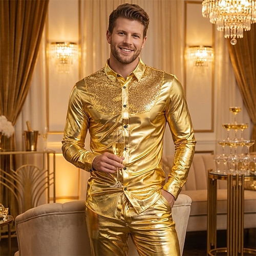 Disco Anni '80 Metallico Lucido Blusa / Camicia Mascherata Disco Costume Per uomo Costume di Carnevale Mascherata Festa / Sera Addio al Nubilato Parata dell'Orgoglio Adulti Camicia