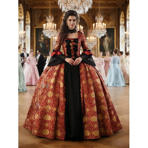 Rococò Vittoriano Rinascimento Lunghezza al pavimento Vestito Costume da festa Mascherata Taglie Forti Normale A palloncino Manica del polsino svasato Principessa Pizzo Tela Vintage Abito da ballo