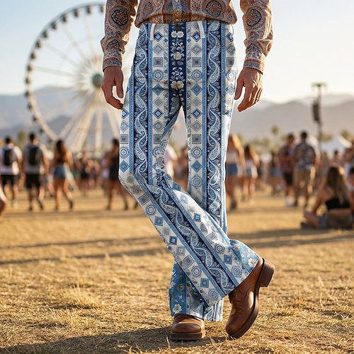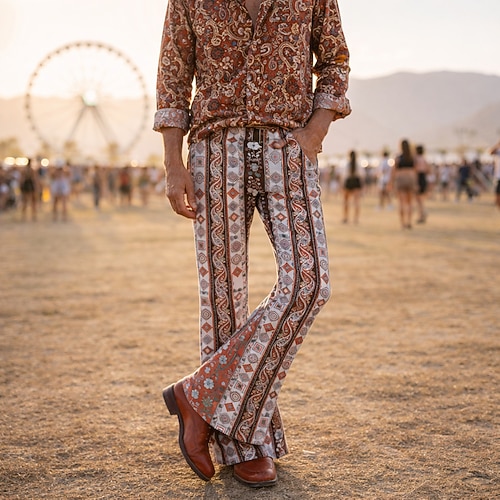 Retrò Vintage Boho Anni '70 Pantaloni Pantaloni a gamba larga Hippie Disco Vita alta Etnico Costume Per uomo Halloween Carnevale Festival Musicale Festa a tema retrò Adulti Pantaloni