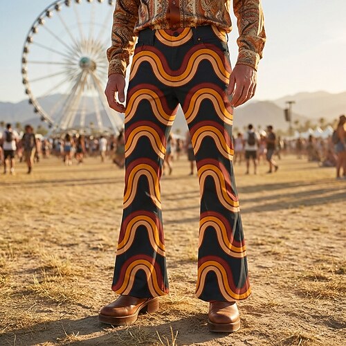 Retrò Vintage Boho Anni '70 Pantaloni Pantaloni a gamba larga Hippie Disco Vita alta Con onde Costume Per uomo Halloween Carnevale Festival Musicale Festa a tema retrò Adulti Pantaloni