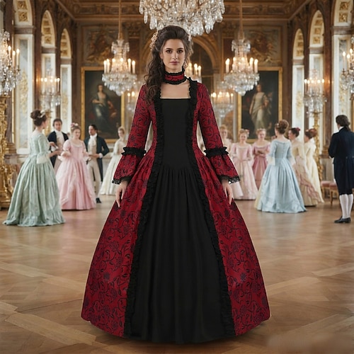 Rococò Vittoriano Medievale Lunghezza al pavimento Vestito Manica del polsino svasato Abito da ballo Costume Per donna Reale Halloween Carnevale Balli di fine anno Feste Carnevale di Venezia Vestito