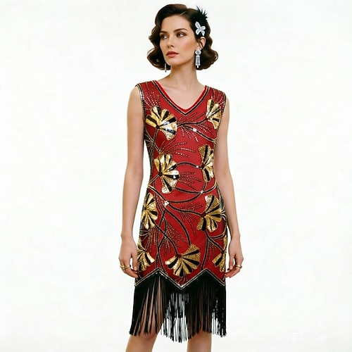 Anni Ruggenti Anni 1920 Retrò Vintage Lunghezza al ginocchio Abito Flapper Senza maniche Il grande Gatsby Charleston Paillettes Foglia Costume Per donna Halloween Carnevale Festa Sera Adulti Vestito