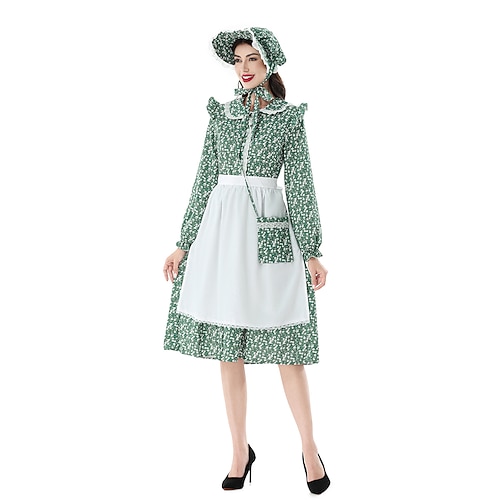 250° anniversario USA 19° secolo anni 1800 Abito da prateria Set cuffia e grembiule Lunghe Ragazza pioniera Coloniale Pioniere Guerra rivoluzionaria Floreale Costume Per donna Halloween Carnevale 4