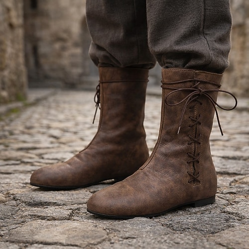 Retrò Vintage Medievale Rinascimento Scarpe Stivali jazz piatti Pirata Vichingo Crociato Costume Per uomo Celtico Costumi da pirata Halloween Carnevale Mascherata LARP Fiera Rinascimentale Adulti