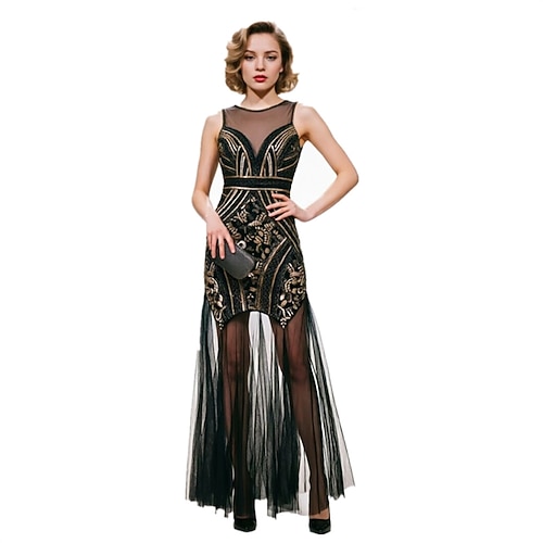Anni Ruggenti Anni 1920 Retrò Vintage Lunghezza alla caviglia Vestito Abito da sera Senza maniche Il grande Gatsby Charleston Paillettes Tubino Colonna Costume Per donna Carnevale Festa serale Adulti