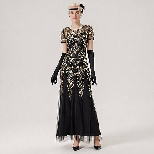 Set Anni Ruggenti Anni 1920 Lunghezza alla caviglia Lunghezza lunga Vestito Abito da sera Abiti con accessori Cortissima Il grande Gatsby Invitato al matrimonio Paillettes Paillettes Scollo Tondo