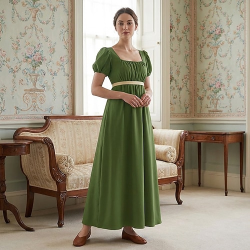 Retrò Vintage Medievale Rinascimento Lunghezza alla caviglia Vestito Abito da Ballo Abito ispirato alla Reggenza Maniche corte Principessa Gentildonna Tinta unica Collo quadrato Costume Per donna
