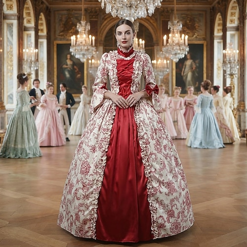 Abito Vittoriano Medievale 18° Secolo Lunghezza alla caviglia Lunghezza lunga Vestito Costume da festa Mascherata Taglie Forti Normale Su misura Patchwork Abito da ballo Costume Per donna Feste Balli
