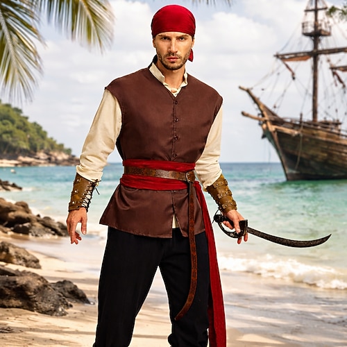 Medievale Rinascimento Pantaloni Copricapo Gilet Lunghe Pirata Costume Per uomo Costumi da pirata Mascherata Feste Fiera Rinascimentale LARP Adulti Gilet Camicia Pantaloni Tutte le stagioni