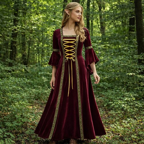 Retrò Vintage Medievale Rinascimento Lunghezza al pavimento Vestito Lunghe Costume Per donna Halloween Carnevale Mascherata Fiera Rinascimentale Festa a tema retrò Adulti Vestito Tutte le stagioni