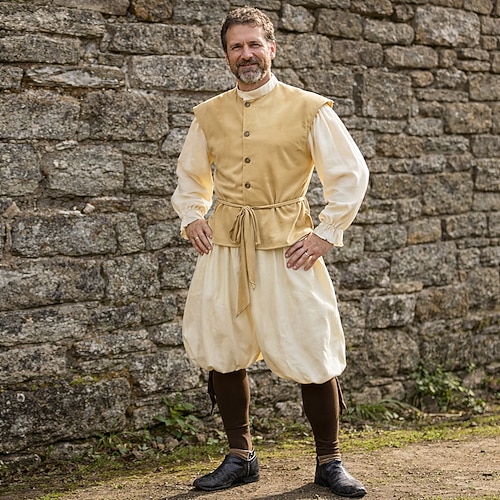 Set Retrò Vintage Medievale Rinascimento Pantaloni Gilet Camicia Lunghe Pirata Vichingo Ranger Girocollo Costume Per uomo Costumi da pirata Halloween Carnevale Fiera Rinascimentale LARP Adulti Gilet