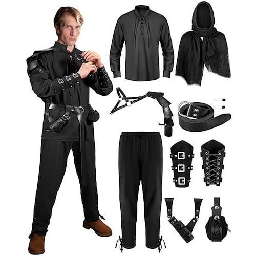 Medievale Rinascimento Pantaloni Camicia Mantello con Cappuccio Lunghe Arciere Pirata Ranger Allacciato Costume Per uomo Costumi da pirata Mascherata Feste Fiera Rinascimentale LARP Adulti Camicia