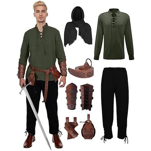 Medievale Rinascimento Costume di fantasia Lunghe Pirata Vichingo Costume Per uomo Vichingo Costumi da pirata Halloween Carnevale Performance LARP Fiera Rinascimentale Adulti Camicia Pantaloni Cintura