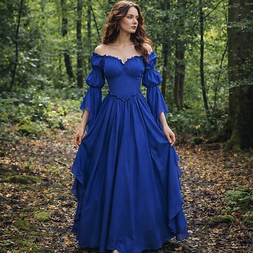 Retrò Vintage Medievale Rinascimento Lunghezza al pavimento Vestito Elfo Costume Per donna Halloween Carnevale Mascherata Fiera Rinascimentale Festa a tema retrò Adulti Vestito Tutte le stagioni