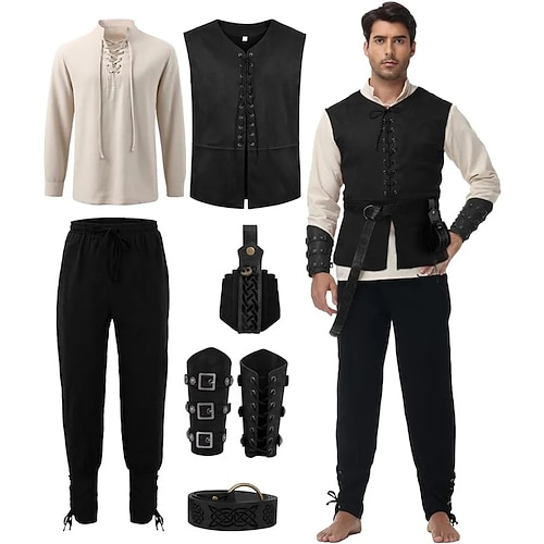 Medievale Rinascimento Pantaloni Gilet Cintura in Vita Lunghe Pirata Vichingo Ranger Allacciato Costume Per uomo Costumi da pirata Mascherata Feste Fiera Rinascimentale LARP Adulti Gilet Camicia