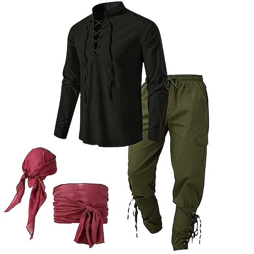 Set Medievale Rinascimento Pantaloni Copricapo Cintura in Vita con accessori Lunghe Pirata Allacciato Tinta unica Costume Per uomo 4 pezzi Costumi da pirata Halloween Carnevale Fiera Rinascimentale