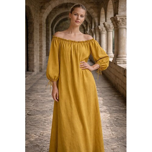 Medievale Rinascimento Vestito Camicia da notte Sotto il vestito Lunghe Abiti reali Tinta unica Costume Per donna Celtico Halloween Carnevale Performance LARP Fiera Rinascimentale Adulti Vestito