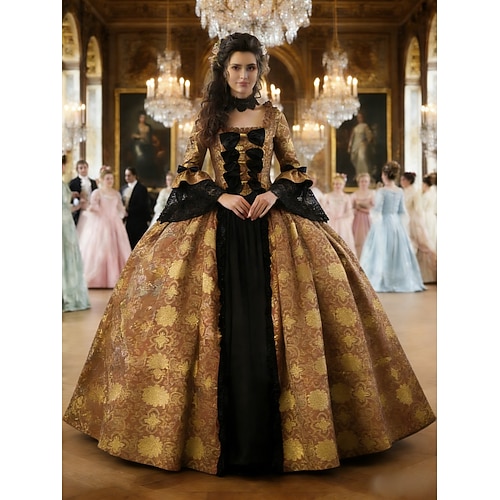 Abito Vittoriano Medievale 18° Secolo Lunghezza alla caviglia Lunghezza lunga Vestito Costume da festa Mascherata Taglie Forti Normale Su misura Patchwork Abito da ballo Costume Per donna Feste Balli