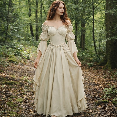 Retrò Vintage Medievale Rinascimento Lunghezza al pavimento Vestito Elfo Costume Per donna Halloween Carnevale Mascherata Fiera Rinascimentale Festa a tema retrò Adulti Vestito Tutte le stagioni