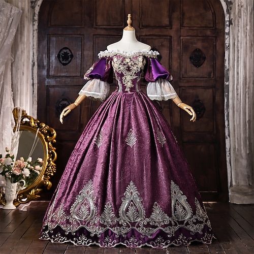 Abito Rococò Vittoriano 18° Secolo Lunghezza al pavimento Vestito Costume da festa Mascherata Taglie Forti Normale Su misura Ad aletta Vintage Costume Per donna Reale Feste Balli di fine anno