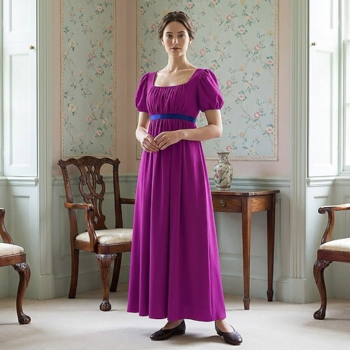 Retrò Vintage Medievale Rinascimento Lunghezza alla caviglia Vestito Abito da Ballo Abito ispirato alla Reggenza Maniche corte Principessa Gentildonna Tinta unica Collo quadrato Costume Per donna