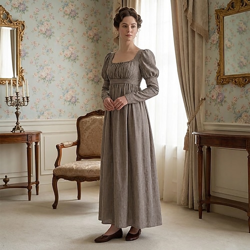 Medievale Rinascimento Abito da cocktail Abito da Ballo Abito ispirato alla Reggenza Signora Principessa A righe Collo quadrato Costume Per donna Reale Mascherata Feste Halloween Tè Adulti Vestito