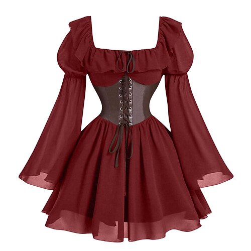 Retrò Vintage Medievale Rinascimento Lunghezza corta Vestito Maniche corte Strega Elfo Costume Per donna Halloween Carnevale Fiera Rinascimentale Festa a tema retrò Adulti Vestito Tutte le stagioni