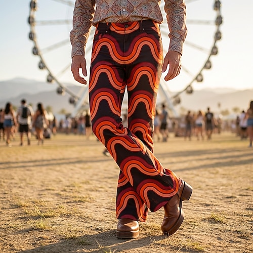 Retrò Vintage Boho Anni '70 Pantaloni Pantaloni a gamba larga Hippie Disco Vita alta Con onde Costume Per uomo Halloween Carnevale Festival Musicale Festa a tema retrò Adulti Pantaloni
