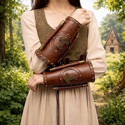Retrò Vintage Medievale Rinascimento Bracciali Pirata Vichingo Ranger Costume Unisex Vichingo Halloween Carnevale Fiera Rinascimentale LARP Festa a tema retrò Adulti Parabraccia Tutte le stagioni