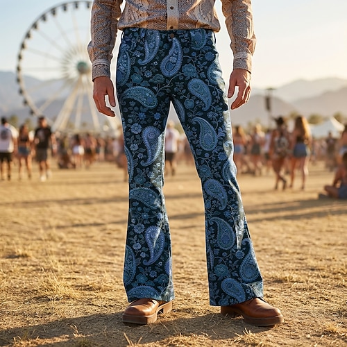 Retrò Vintage Boho Anni '70 Pantaloni Pantaloni a gamba larga Hippie Disco Vita alta Paisley Costume Per uomo Halloween Carnevale Festival Musicale Festa a tema retrò Adulti Pantaloni