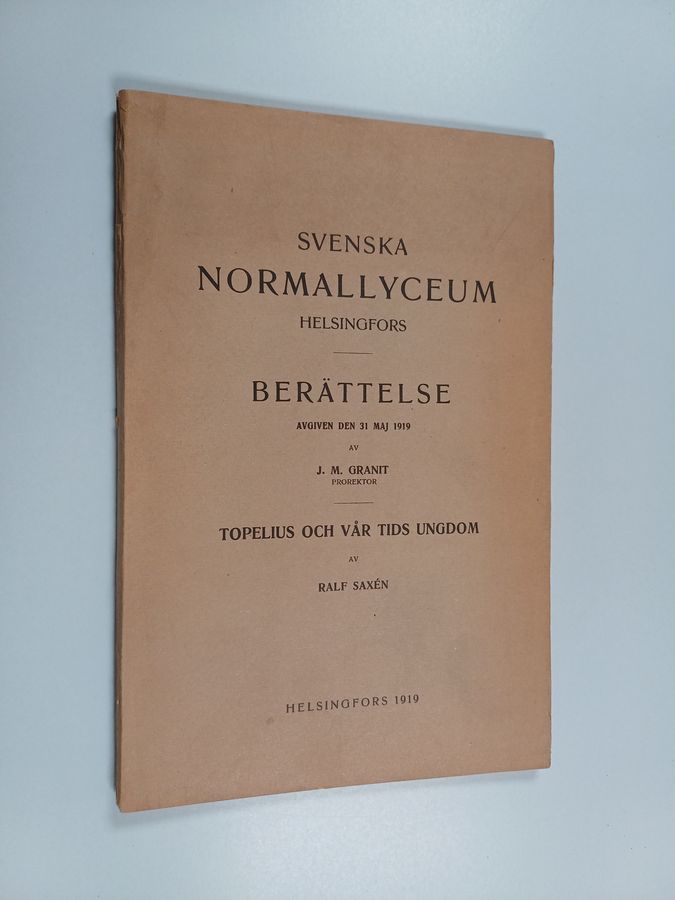 Ralf Saxen ym. : Svenska normallyceum Helsingfors : Berättelse avgiven den 31 Maj 1919 : Topelius och vår tids ungdom