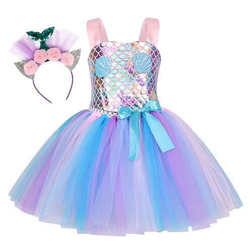 Sirena Principessa Vestito Tutu Costume per festa a tema Film Cosplay for Ragazze Bambini Halloween Mascherata Vacanza Feste Ferie