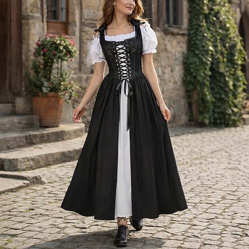 Set Retrò Vintage Medievale Rinascimento Lunghezza al pavimento Vestito Corsetto Maniche corte Fata Corsetto Costume Per donna Fantasia Halloween Carnevale Fiera Rinascimentale LARP Festa a tema retrò