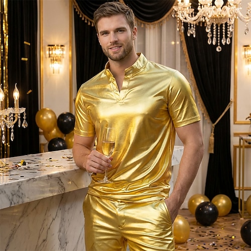 Disco Anni '80 Metallico Lucido Mascherata Disco Costume Per uomo Costume di Carnevale Mascherata Festa / Sera Addio al Nubilato Parata dell'Orgoglio Adulti Top