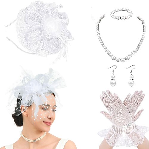 Anni 1950 Retrò Vintage Guanti Collana Cappello Fascinator Gentildonna Costume Per donna Mascherata Ascot Festival delle corse di cavalli Adulti Copricapo Tutte le stagioni