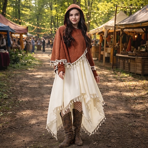 Set Stile Boho Retrò Vintage Medievale Asimmetrico Vestito Scialli Lunghe Ranger Costume Per donna Halloween Carnevale Mascherata Festa a Tema Fiera Rinascimentale Adulti Vestito Scialle Tutte le