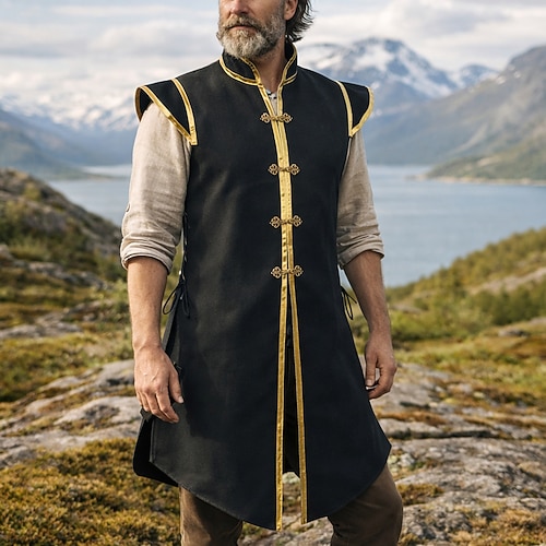 Retrò Vintage Medievale Rinascimento Gilet Senza maniche Elfo Ranger Collo alla coreana Costume Per uomo Fantasia Halloween Carnevale Fiera Rinascimentale LARP Festa a tema retrò Adulti Gilet Tutte