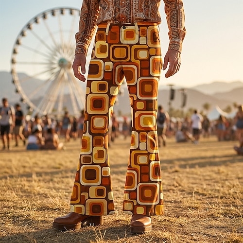 Retrò Vintage Boho Anni '70 Pantaloni Pantaloni a gamba larga Hippie Disco Vita alta Geometrico Costume Per uomo Halloween Carnevale Festival Musicale Festa a tema retrò Adulti Pantaloni
