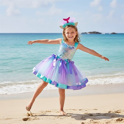 Sirena Principessa Vestito Costume per festa a tema Film Cosplay for Ragazze Bambini Halloween Mascherata Quotidiano Feste Ferie