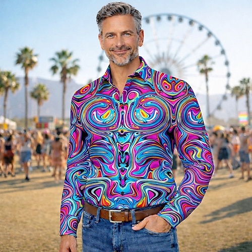 Retrò Vintage Anni '70 Camicia Camicia Aloha Lunghe Hippie Psichedelico Costume Per uomo Mascherata Festival Musicale Feste Abbigliamento quotidiano Adulti Camicia