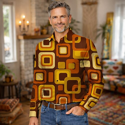 Retrò Vintage Anni '70 Camicia Camicia Aloha Lunghe Hippie Geometrico Etnico Costume Per uomo Mascherata Festival Musicale Feste Abbigliamento quotidiano Adulti Camicia