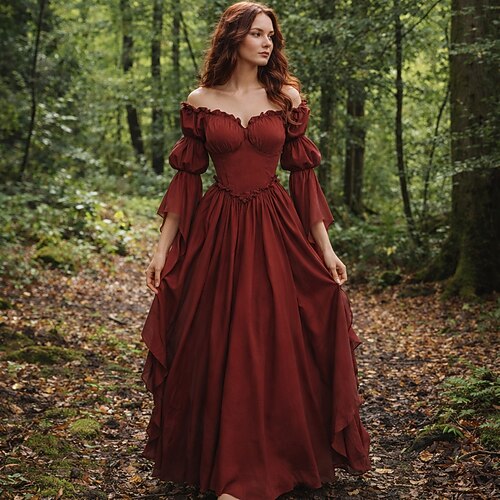 Retrò Vintage Medievale Rinascimento Lunghezza lunga Vestito Costume Per donna Halloween Mascherata Festa a Tema Fiera Rinascimentale Festival Adulti Vestito