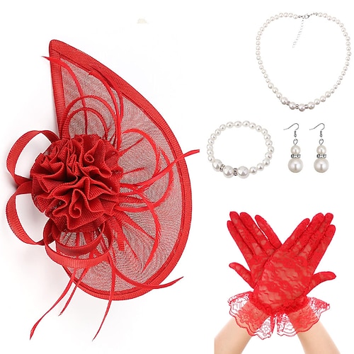 Anni 1950 Retrò Vintage Guanti Collana Cappello Fascinator Gentildonna Costume Per donna Mascherata Ascot Festival delle corse di cavalli Adulti Copricapo Tutte le stagioni