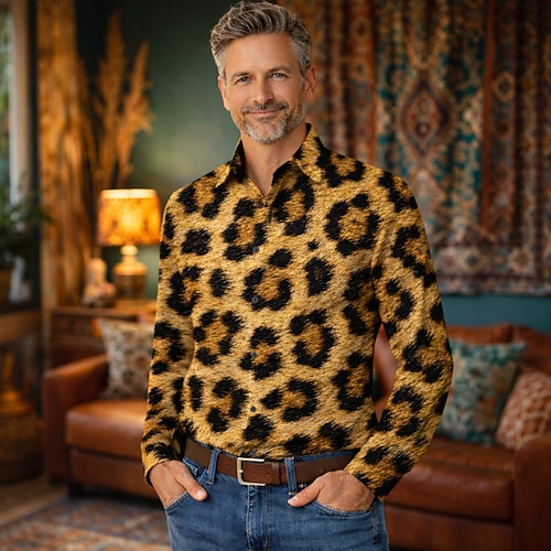 Retrò Vintage Anni '70 Camicia Camicia Aloha Lunghe Hippie Leopardo Costume Per uomo Mascherata Festival Musicale Feste Abbigliamento quotidiano Adulti Camicia