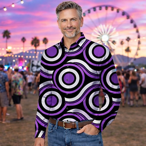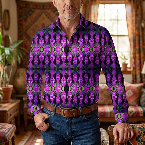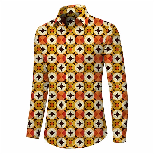 Retrò Vintage Anni '70 Camicia Camicia Aloha Lunghe Hippie Geometrico Costume Per uomo Mascherata Festival Musicale Feste Abbigliamento quotidiano Adulti Camicia