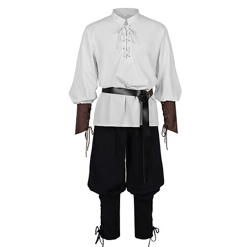 Medievale Rinascimento Costume di fantasia Lunghe Pirata Vichingo Costume Per uomo Vichingo Costumi da pirata Halloween Carnevale Performance LARP Fiera Rinascimentale Adulti Camicia Pantaloni Cintura