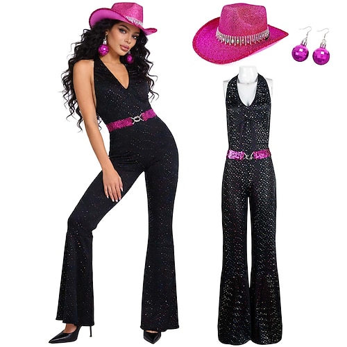 Retrò Vintage Anni '70 Glam Rock Tuta Cappello da Cowboy Disco Costume Per donna Halloween Carnevale Festival Musicale Festa a tema retrò Adulti Costume