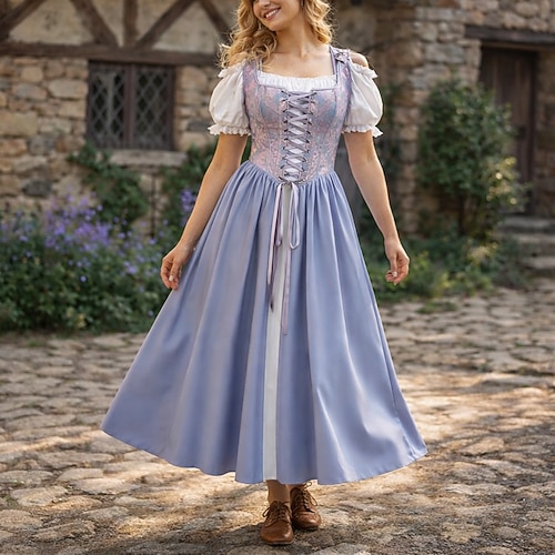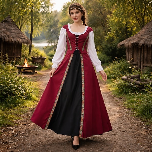 Retrò Vintage Medievale Rinascimento Lunghezza al pavimento Vestito Lunghe Vichingo Allacciato Costume Per donna Fantasia Halloween Carnevale Fiera Rinascimentale LARP Festa a tema retrò Adulti